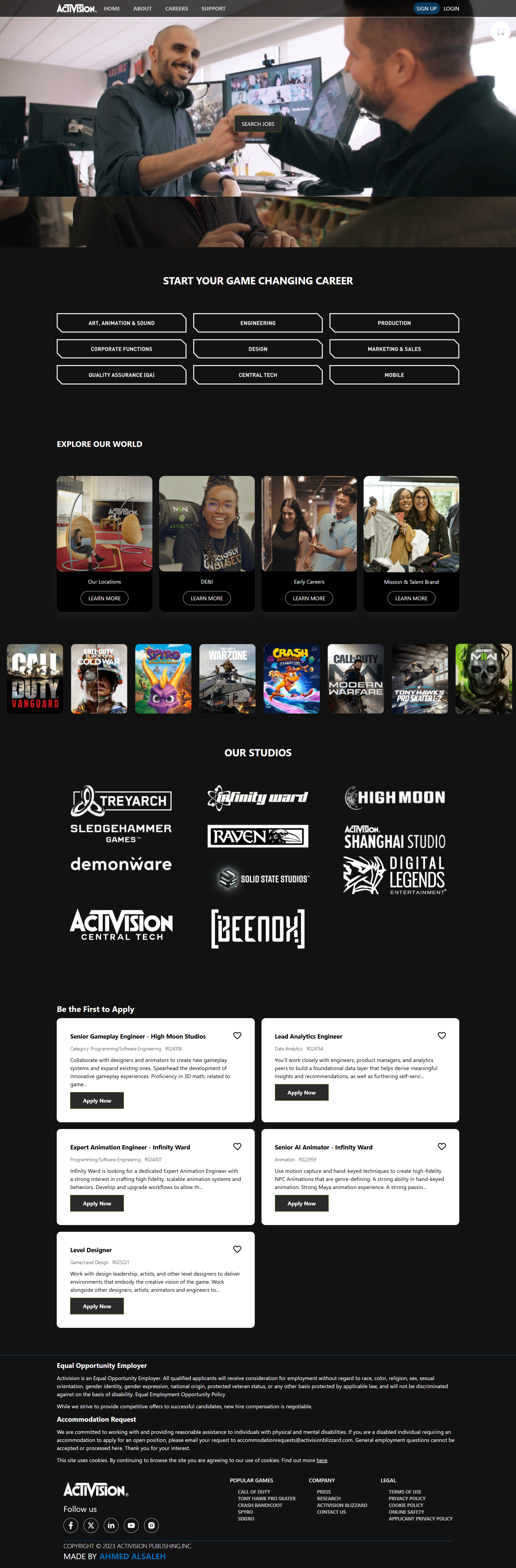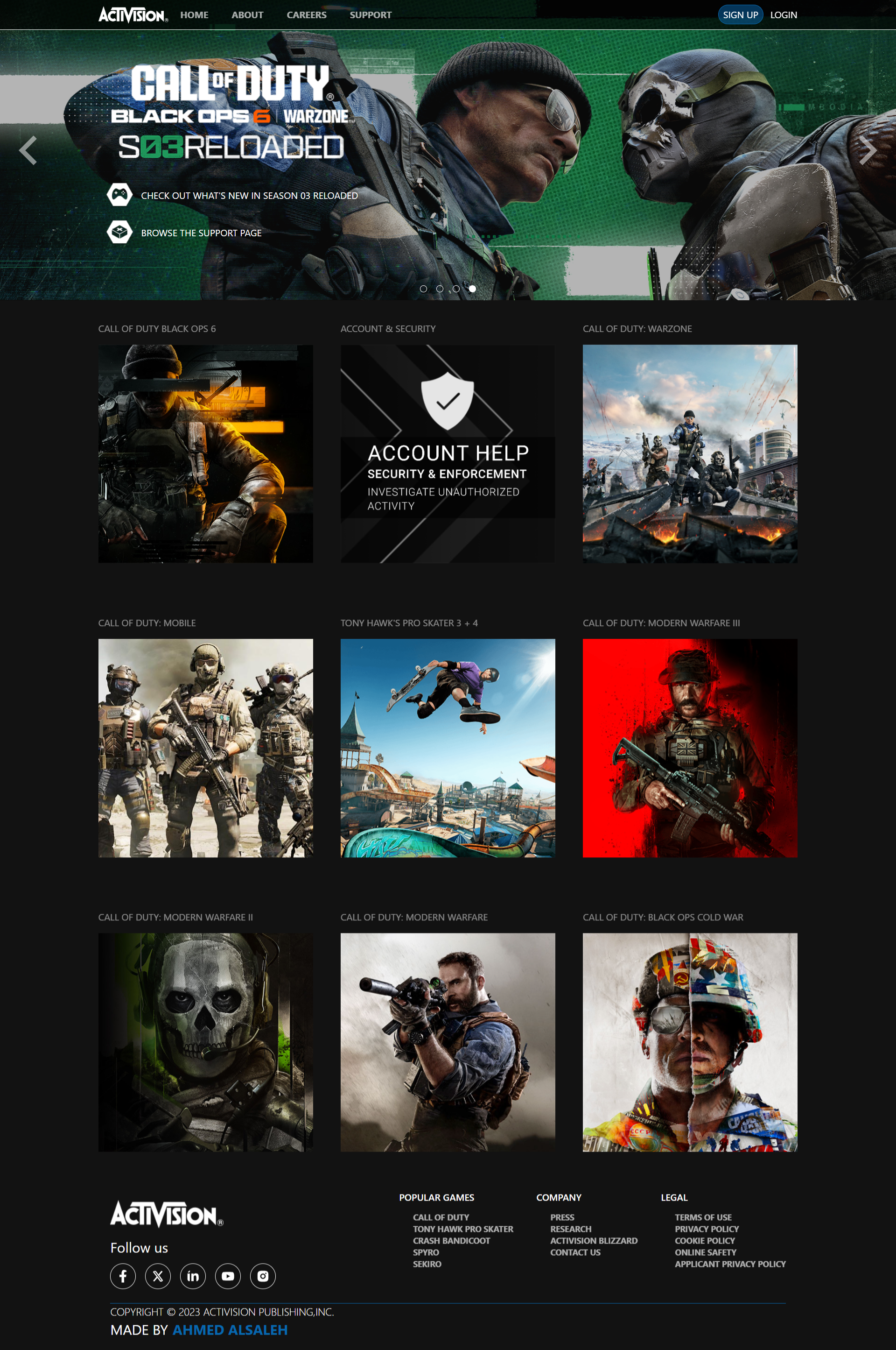 This is a clone of Activision, meticulously recreated with React and Tailwind. While retaining the original design, I identified and fixed several UI/functional issues.This demonstrates both replication skills and problem-solving in front-end development