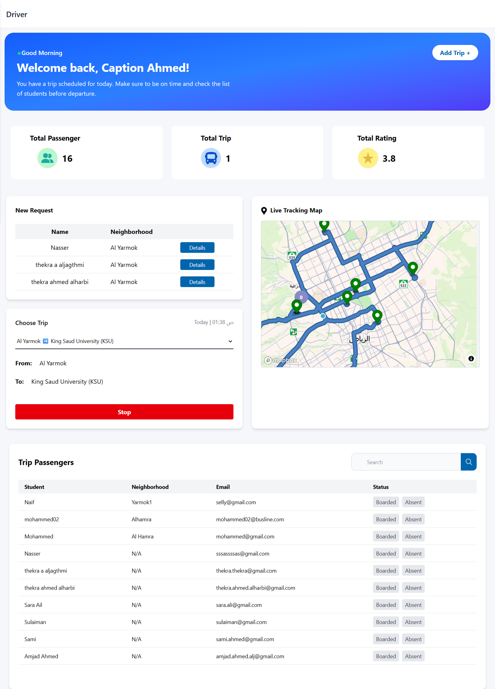 A modern transportation platform built to connect students with private bus drivers, solving daily commute challenges for schools and universities.